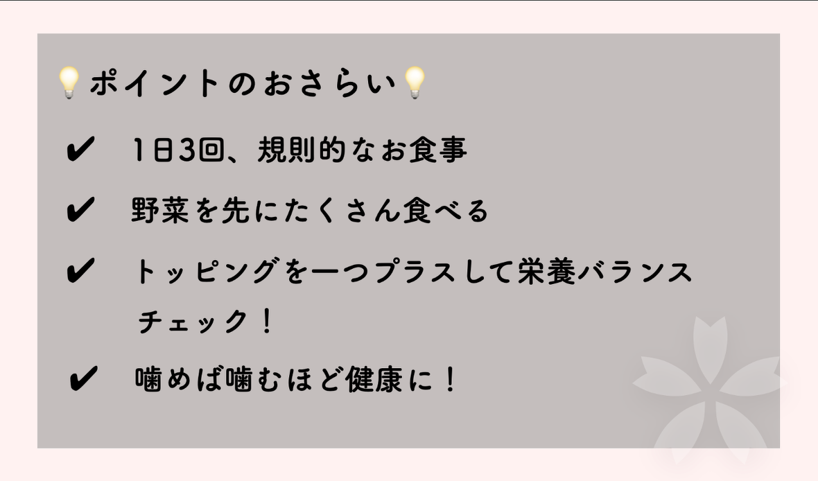 - POINTトッピングを一つプラスして栄養バランスチェック!
